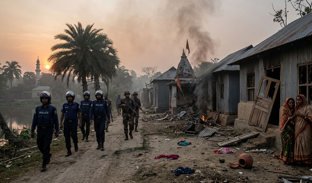 রংপুর, ১২ এপ্রিল ২০২৬ — রংপুরে এক মুসলিম যুবকের মৃত্যুকে কেন্দ্র করে ভোরের আলো ফোটার আগেই সংখ্যালঘু হিন্দু সম্প্রদায়ের একাধিক বাড়িঘর ও ব্যবসায়িক প্রতিষ্ঠানে হামলার ঘটনা ঘটেছে। রাজধানী ঢাকা থেকে প্রায় ৩০০ কিলোমিটার উত্তরের এই জেলায় বর্তমানে চরম উত্তেজনা বিরাজ করছে।